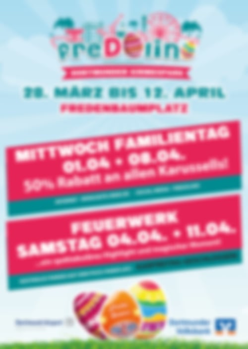 Das gesamte freDOlino 2026-Team kann es kaum erwarten, euch auf dem Fredenbaumplatz in Dortmund zu treffen, um gemeinsam ein grandioses Osterfest zu feiern!
